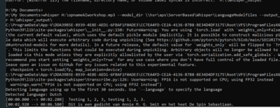 whisper H:\opnameAIworkshop.mp3 –model_dir \\hsr\aps\ServerBased\Whisper\LanguageModelfiles –output_dir H:\Whisper_output\